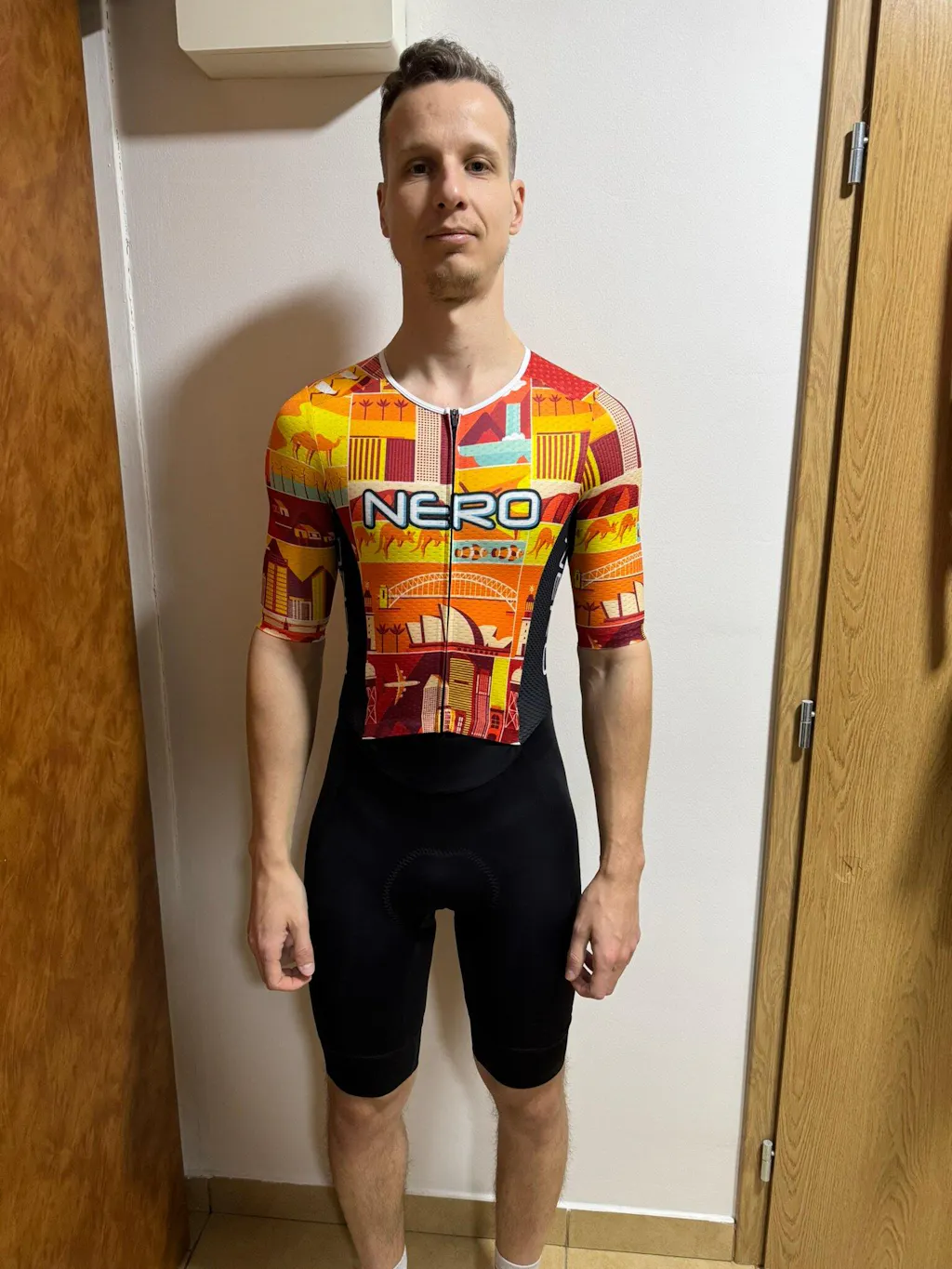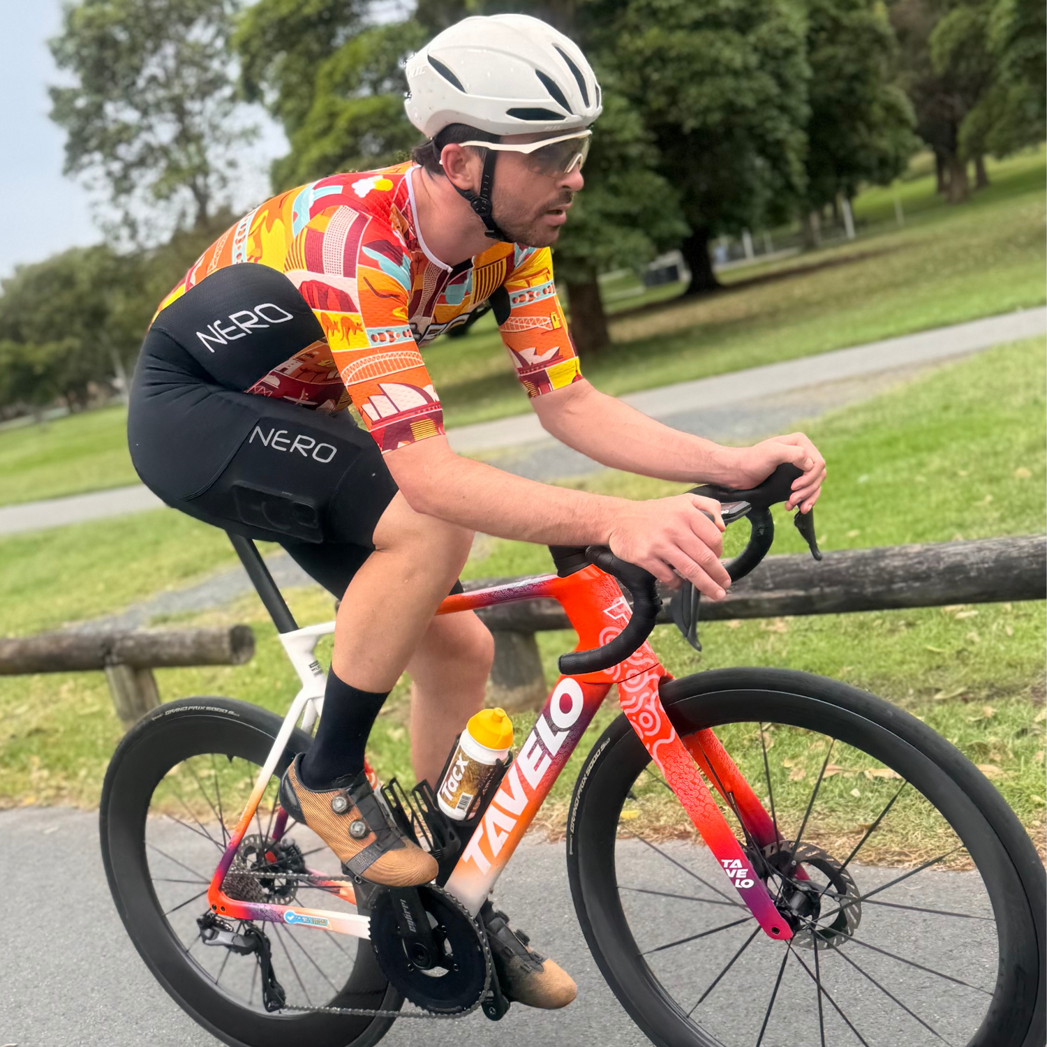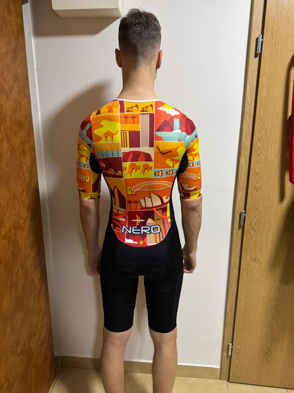The skinsuit fabrics, design and fit is customised in-house and produced directly from our OEM supplier to keep the price competitive.